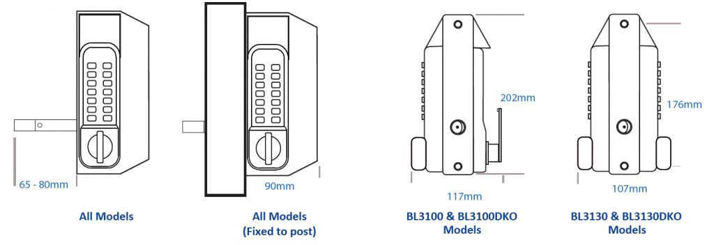 The BL3130DKO ECP in particular comes with back to back knob turn keypad and anti-climb housing, all of which are salt spray tested for 1000 hours. The latch bolt is fully adjustable and, like the keypad, is fully reversible to allow it to suit left and right handed hung gates of many different thicknesses.