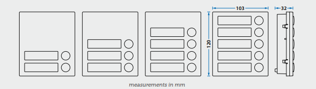 4000 series Brushed steel 4 call button, double row module for audio and video door entry intercoms.