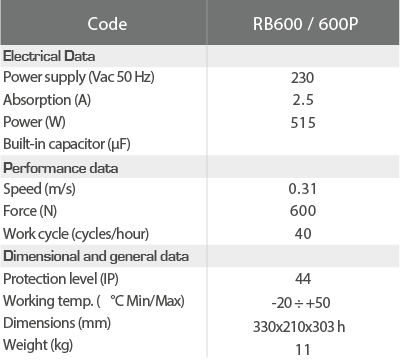 Advanced: Robus 600 & 1000 are equipped with a temperature sensor which adapts the motor power to the climatic conditions and at the same time the thermal cut-out. A master/slave selection automatically synchronises 2 motors. This means it is possible to automate 2-leaf sliding gates set opposite each other.