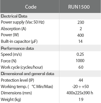 Intelligent: thanks to the obstacle detection system and automatic programming of the working times. Self-diagnosis by means of a flashing light. 8 programming levels.