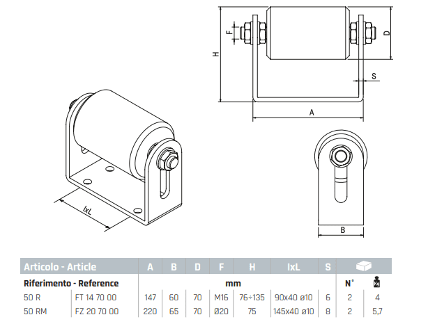 Nylon guide support roller for cantilever gates. Alternative option to post-fixed meeting point on the opening side.