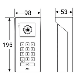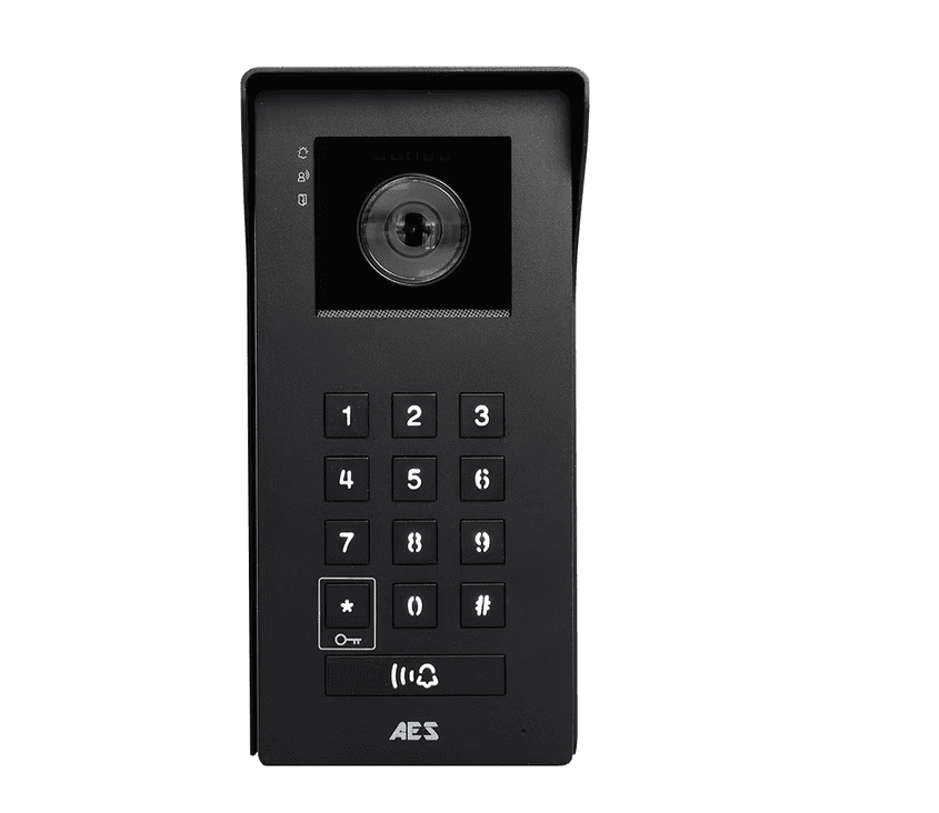 1 Call button IP (Power over Ethernet) Video intercom, with keypad. Supplied as surface mount with a hooded rain shield. Connect via WiFi or LAN Cable.