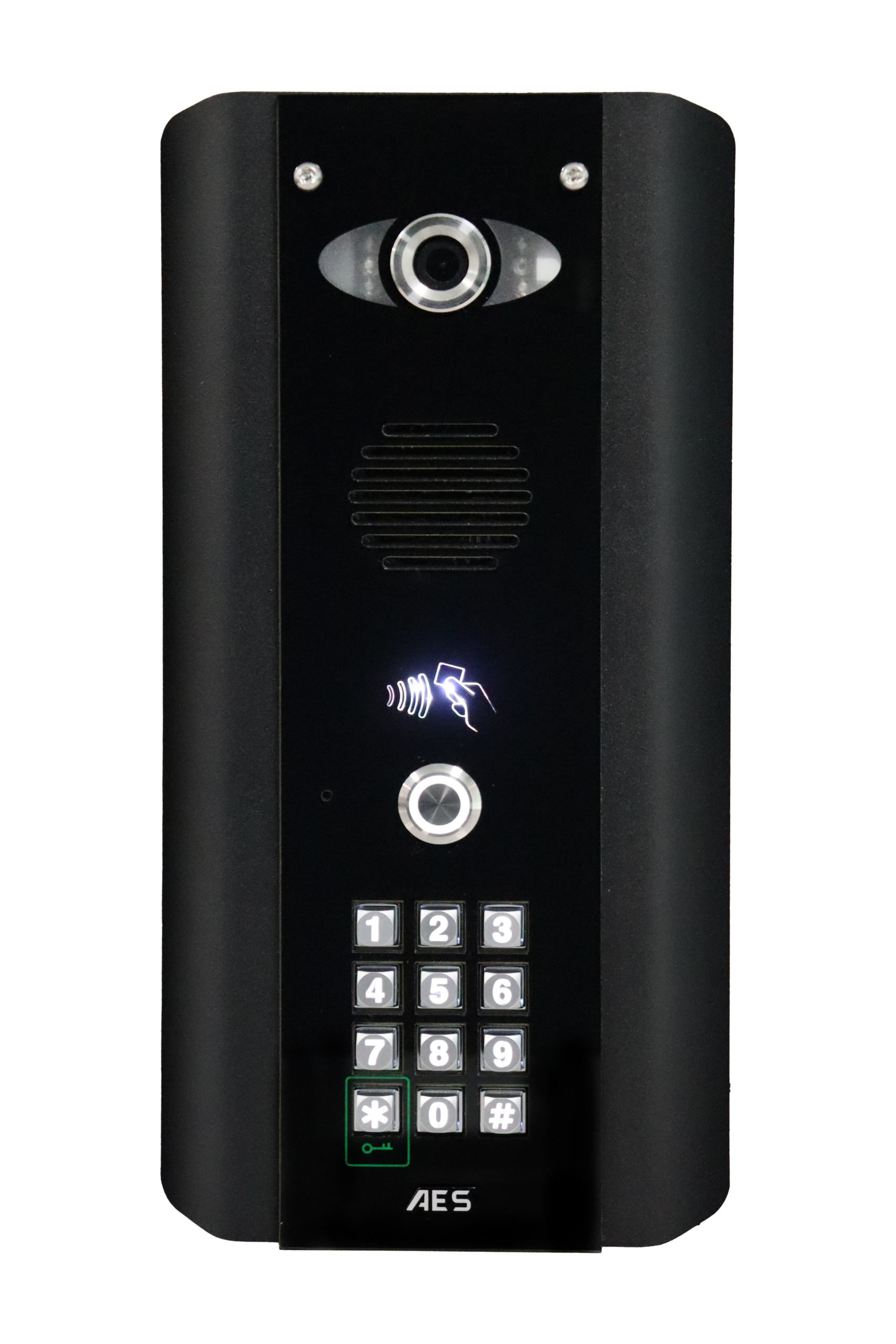 1 Call button IP (Power over Ethernet) Video intercom with keypad. Supplied as a surface mount in the black architectural curved finish.