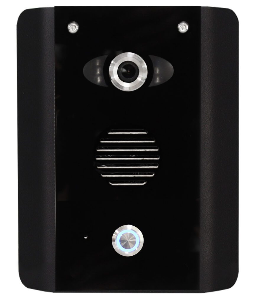 1 Call button IP (Power over Ethernet) Video intercom with keypad. Supplied as a surface mount in the black architectural curved finish.