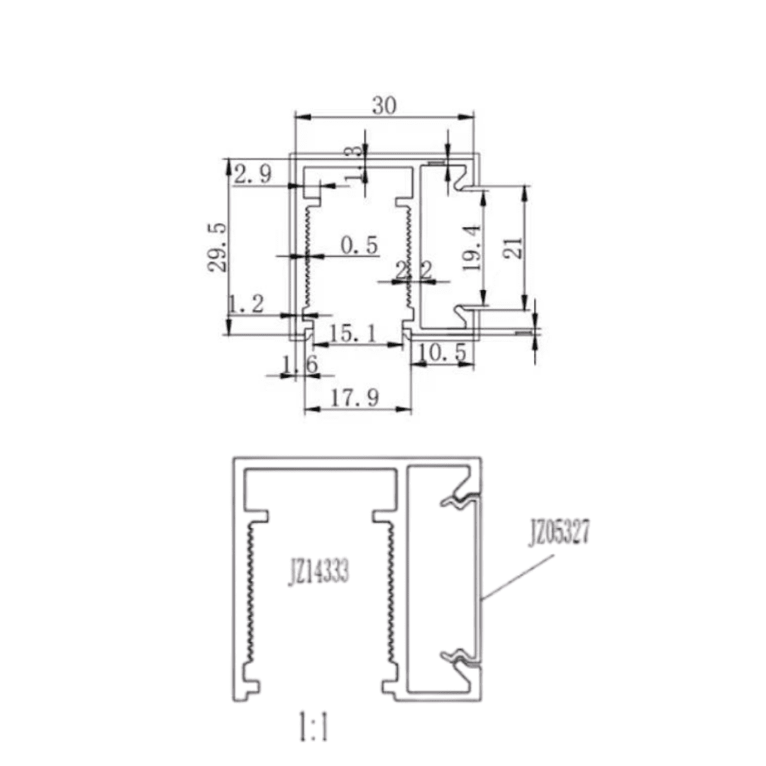 3m length aluminium U Channel with slide in clip cover.