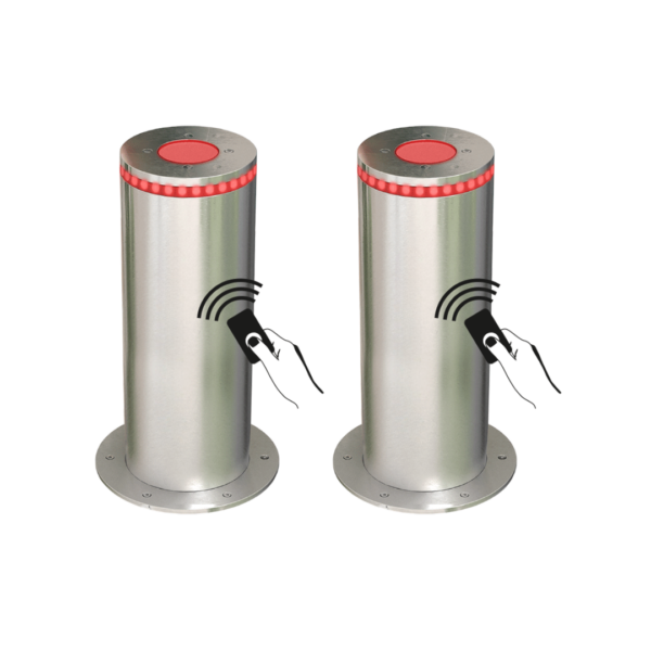The bollards can be operated by remote control transmitters or various other access control devices.