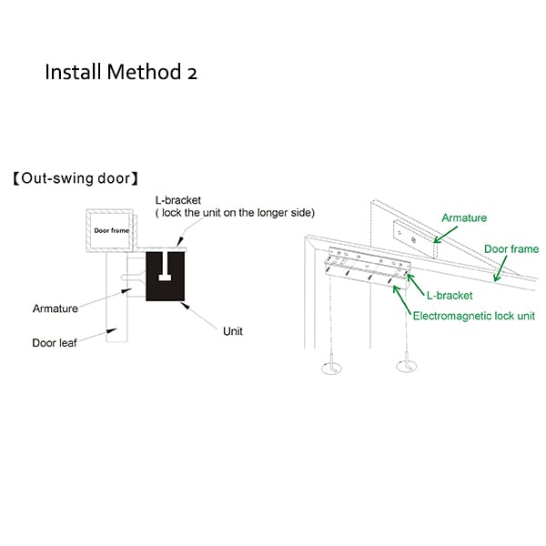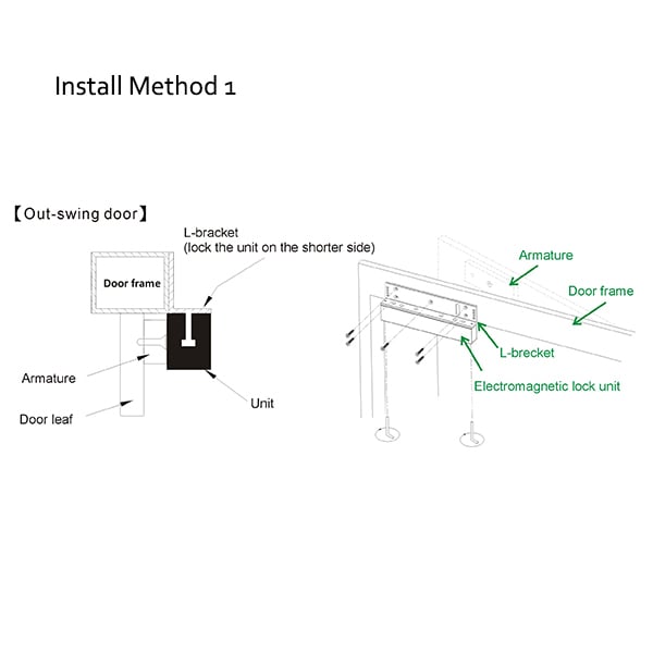 Only suitable for out-swing door and door frame with insufficient width for installation. (Please refer to SL-200 and SL-220 installation diagrams for door frame’s width to install)
