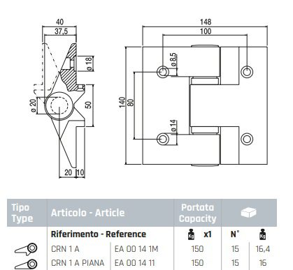 Rolling Center CRN1A PIANA Light Alloy Black Varished Hinge