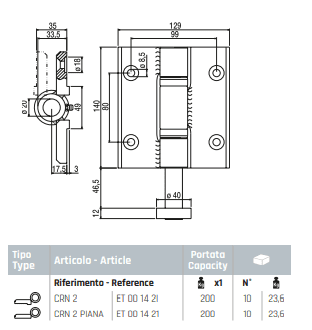 Rolling Center CRN2 Hinge with 2 Lower Wings and Bearing