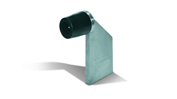 Weld on stainless steel travel stop for sliding gates with 40mm diameter rubber stop.
